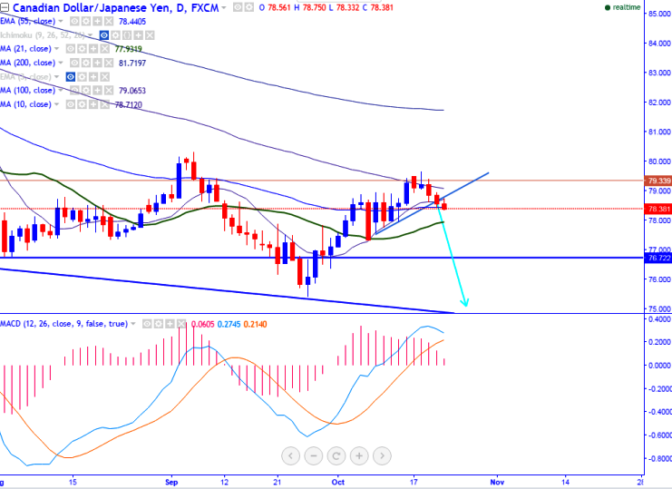 - Major support – 78.60 (trend line joining 77.55 and 77.96).