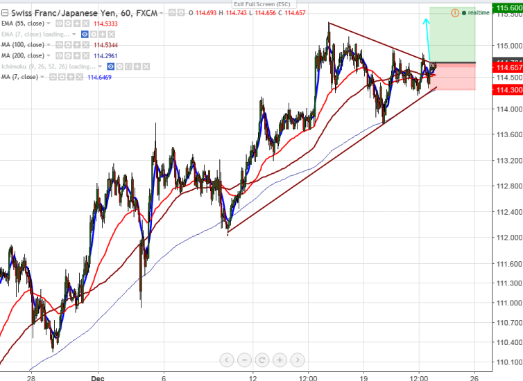 CHF/JPY breaks minor trend line resistance around 114.70, jump till 115.60 likely