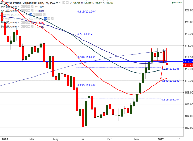 - CHF/JPY breaks major support at 113.35 and declined till 112.56. It is currently trading around 112.68.