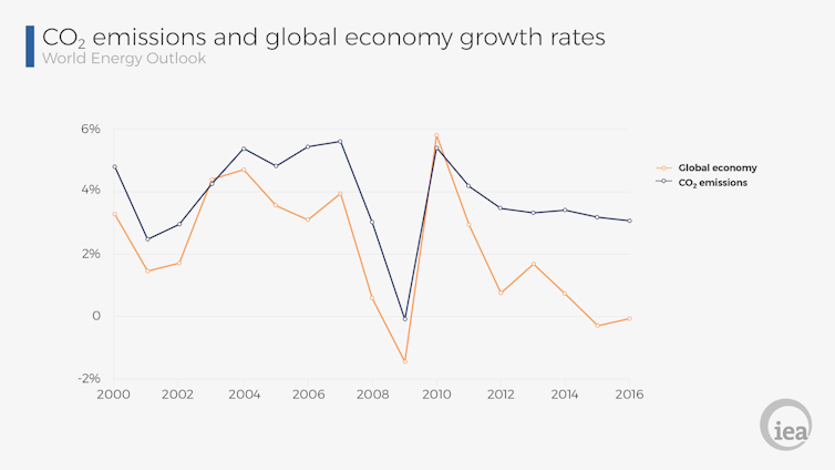Economic growth and carbon emissions are tightly linked. To limit one we must limit the other. International Energy Agency