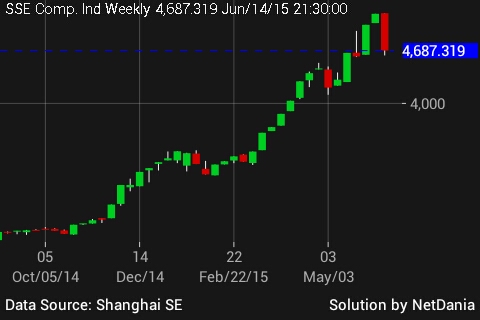 - As of now, Shanghai Composite is trading at 4687 down from 5174 its recent high. The index is down around 9.5% so far this week. This stands as the worst weekly drop since 2008, when stocks dropped a massive 12.8% on October 10th on that year. The stock market is still up 131% in last 1 year.