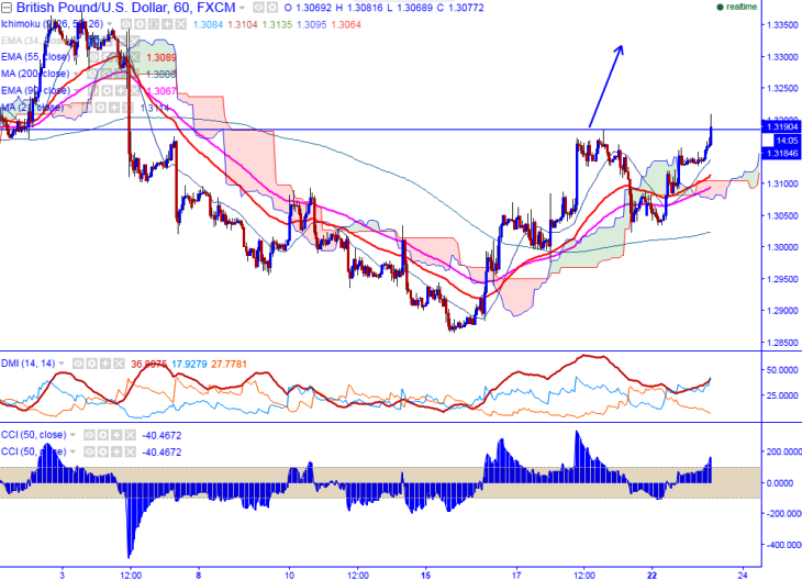 - GBP/USD has broken major resistance 1.3185 and a jump till 1.3310 (23.6% retracement of 1.51086 and 1.27893) is possible.