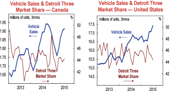US vehicle sales were stronger than expected last month, climbing to an annualized 17.5 million units. This represents the third consecutive month that volumes have exceeded an annualized 17 million units and is the best performance since early 2000, prior to the collapse of the global tech bubble. Gains are being driven by a strengthening economy, including the lowest unemployment rate in more than seven years and solid replacement demand. According to IHS Automotive, the average age of the U.S. vehicle fleet increased to a record 11.5 years in early 2015, and will continue to edge higher, as there are more than 40 million vehicles on U.S. roads between the age of 11 and 14 years.