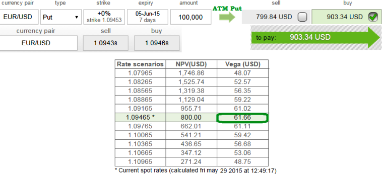 So if you expect EUR/USD to dip or remain range bound then you could look ahead to trade a long ATM with less Vega value naked put.