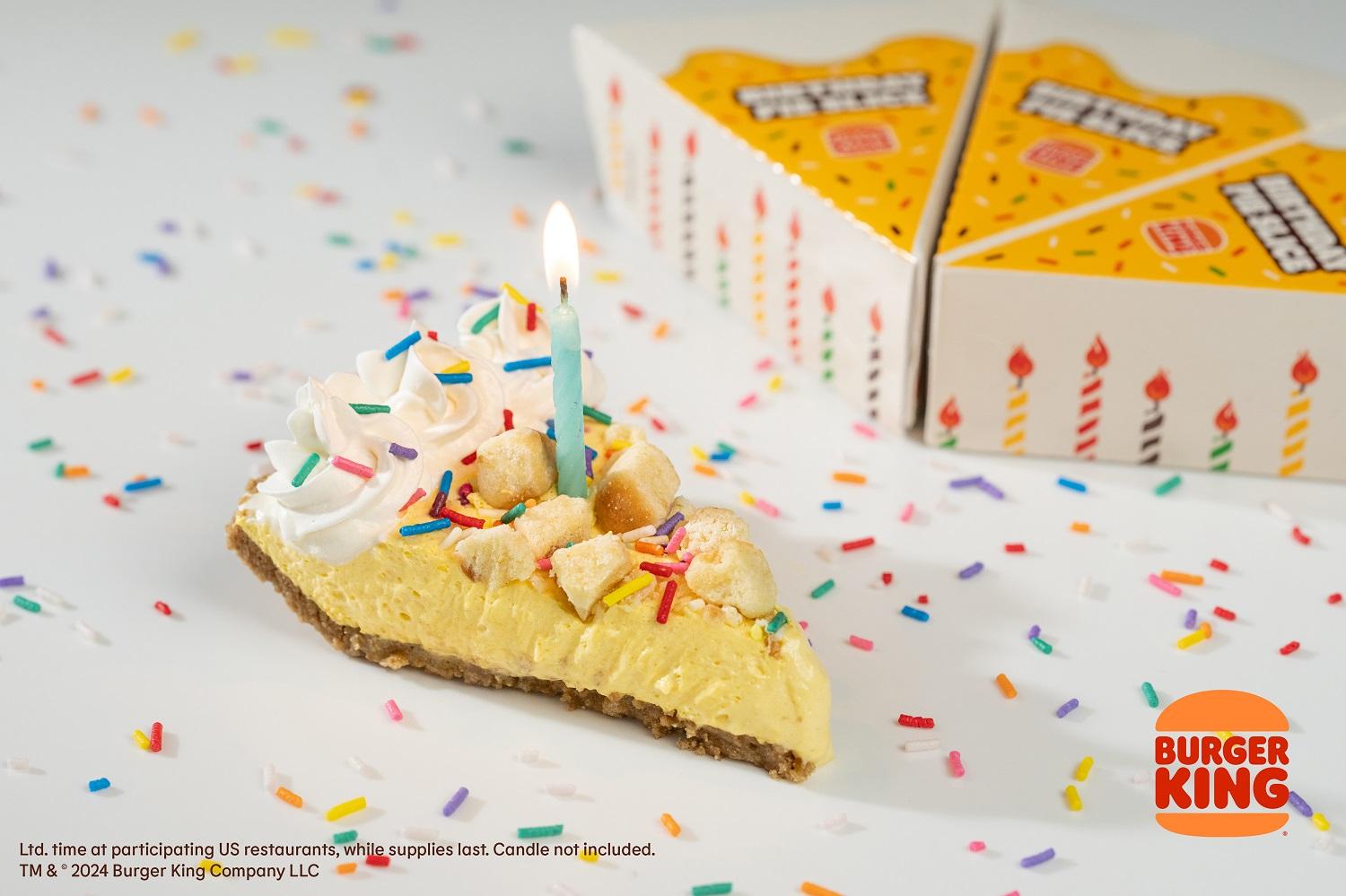 Restaurant Business reported that starting May 13, at participating restaurants nationwide, Burger King is introducing an all-new festive dessert – the Birthday Pie Slice. This creamy, birthday cake-flavored pie comes in a cookie crumb crust, adorned with rainbow-colored sprinkles, cake bites, and whipped topping, making for a perfect celebratory treat.