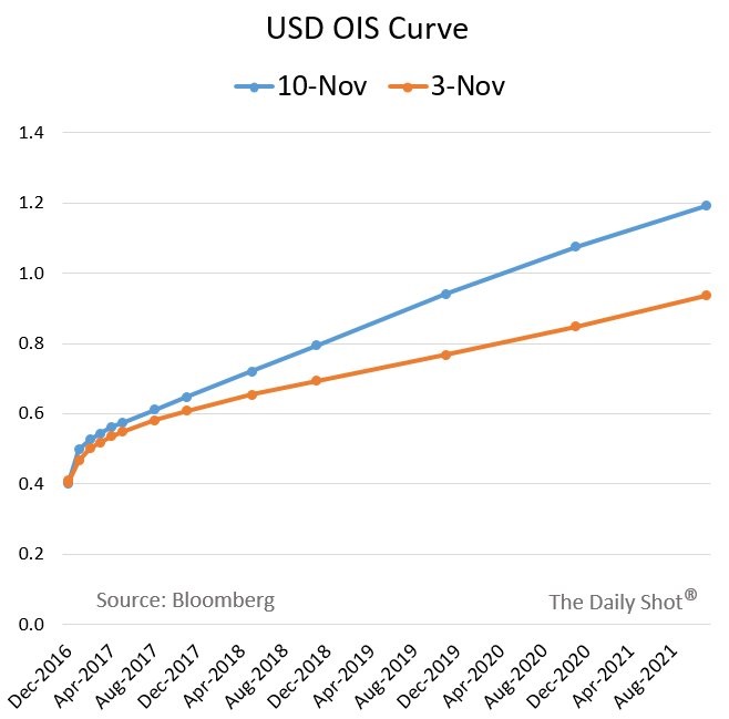 This chart shared by Soberlook.com shows how the overnight Index Swap (OIS) just steepened after Republican candidate Donald Trump became the next US President.