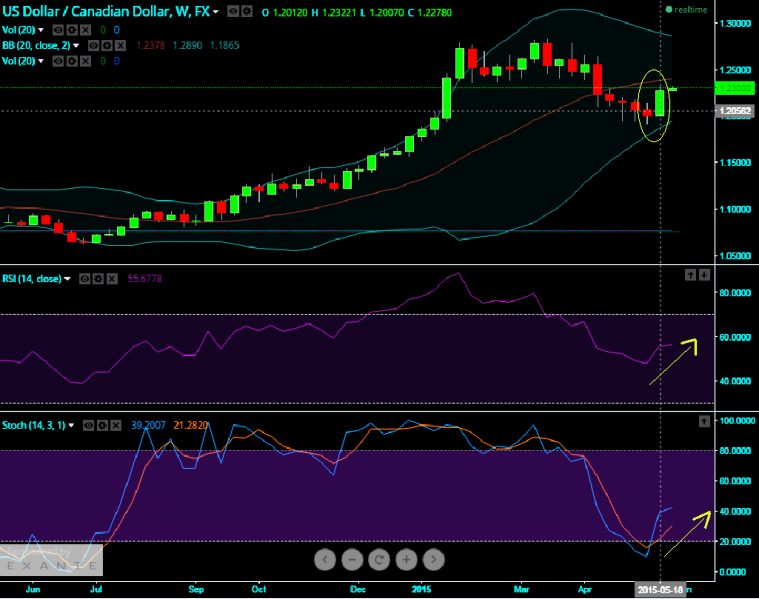 A strong bullish candlestick occurred on both daily and weekly charts which resemble the bullish engulfing pattern. This pattern suggests the impetus to spike up in near future.