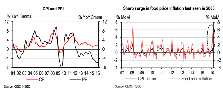 China's consumer price inflation rose 2.3 percent from a year ago, faster than January's 1.8 percent rise and well above Reuters expectations for 1.9 percent rise. The headline CPI inflation might continue to be relatively strong until food prices normalise, and this is unlikely to pose a constraint on PBoC's monetary policy.