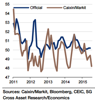 "The official PMI is expected to decline only slightly to 50.1 in July from 50.2 in June", forecasts Societe Generale.