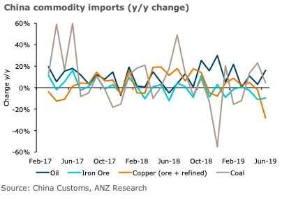 China’s commodities imports for June have shown a softer tinge amid slowing economic growth fear. Imports in H1 2019 still signalled firmer demand for some of the commodities. Although Chinese stimulatory measures is expected to support the commodity imports in H2, further trade tensions remain a downside risk for demand, according to the latest report from ANZ Research.
