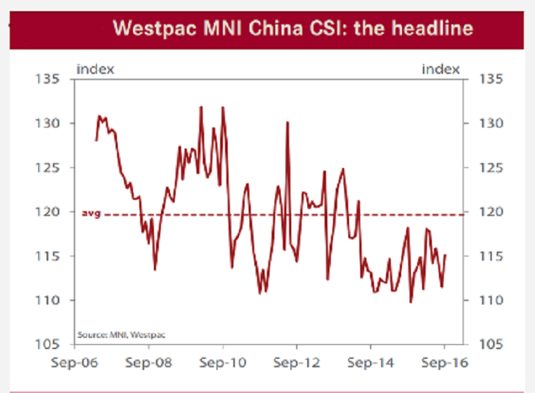 China’s consumer sentiment recovered during the month of September, although remaining well below the long-run average of 120, but is slightly above the average read over the last 12 months.