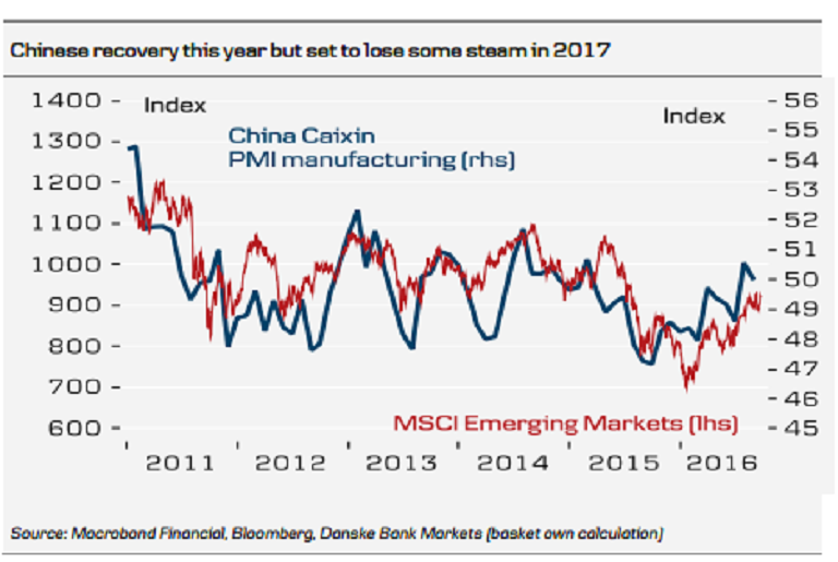 A fiscal stimulus via infrastructure investments, a rebound in the construction sector due to strong home sales and reduction in home inventories amid a moderation in exports, supported by a 10 percent weakening of the CNY that boosted the country’s performance in the past few months, are all expected to fade out going into 2017, Danske Bank reported.