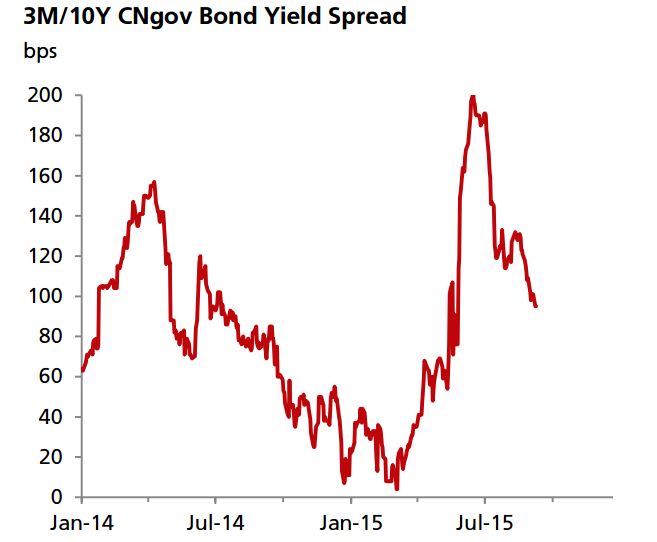 According to DBS Bank, there remains ample room to inject liquidity in the financial system with further reserve requirement ratio cuts likely in the coming months. Against this backdrop of economic growth concerns, DBS Bank says that it suspects that the 7D repo rate is likely to hover between 2-3%. Any whiff of stabilization is likely to prompt steepening in the CNY swap and CNgov curve.