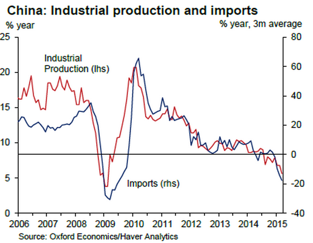 We therefore expect the manufacturing PMI to recover in H2-2015. We expect it to have moderated to 50.0 from 50.1 in March, reflecting still-weak underlying momentum in the manufacturing sector. In the chart, it can easily be figured out how import volumes are directly proportionate to industry production. This explains us to make out the slump in raw material costs have had the adverse impact on its currency, and it's likely to persist. CNY to dollar trading at 6.1935 (22:46 GMT).