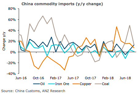 China’s imports for August were strong, defying expectations of weaker demand amid the ongoing US-China trade tension. Most of the major commodities recorded both a m/m and y/y gain, suggesting domestic demand remains strong. The pick-up in imports is all the more impressive considering it has occurred despite a depreciating currency.