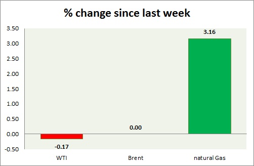 Energy pack is mixed while oil is up, gas is down. Weekly performance at a glance in chart & table.