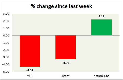 Energy pack is in red today. Weekly performance at a glance in chart & table.