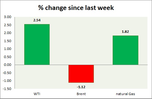 - Brent is trading at $54/barrel. Immediate support lies at $50 area and resistance at $57 region.
