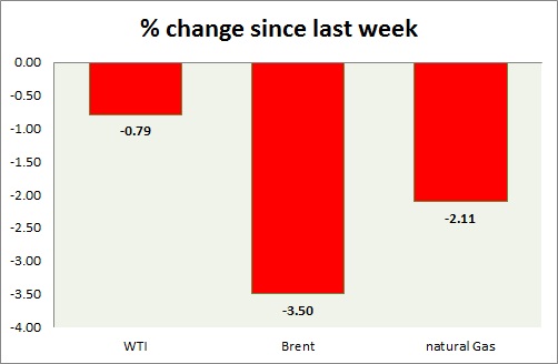 Energy pack is in red today. Weekly performance at a glance in chart & table.