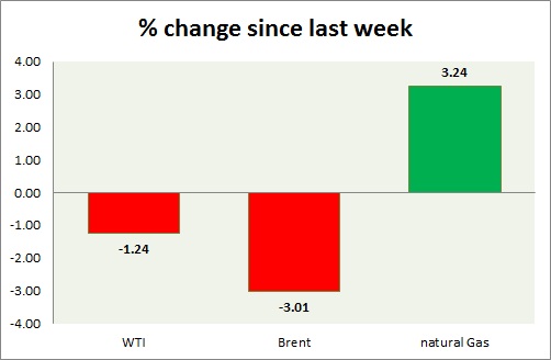 - Brent-WTI spread dropped by 40 cents since last trading day, currently trading at $4/barrel.