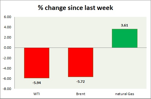 - Brent-WTI spread dropped by 10 cents since last trading day, currently trading at $4.8/barrel.