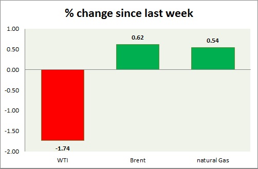 - Brent-WTI spread rose by 70 cents since last trading day, currently trading at $5.9/barrel.