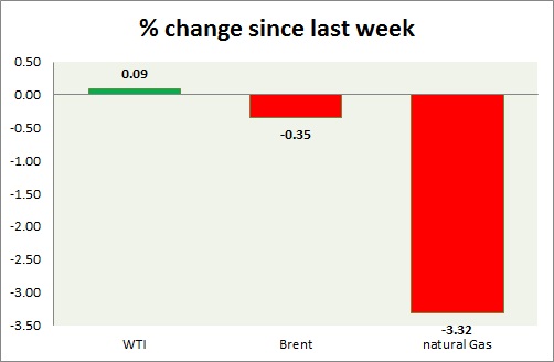 Energy pack is mixed today, while oil is up, gas is down. Weekly performance at a glance in chart & table.