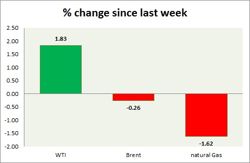 - WTI is down today, however on its way to positive close on the week. Today's range $45.7-47.3