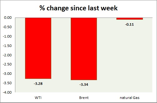 Energy pack is in red today. Weekly performance at a glance in chart & table.
