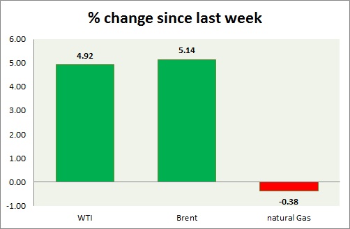 - Brent-WTI spread rose to $3/barrel from $2.2/barrel.