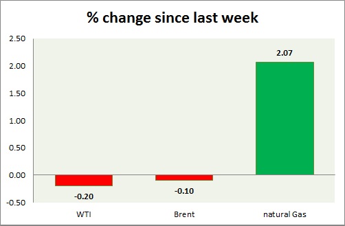 Energy pack is mixed, while gas is down, oil trading in green today. Weekly performance at a glance in chart & table.