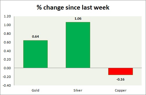 The metal pack is up today. Performance this week at a glance in chart & table -