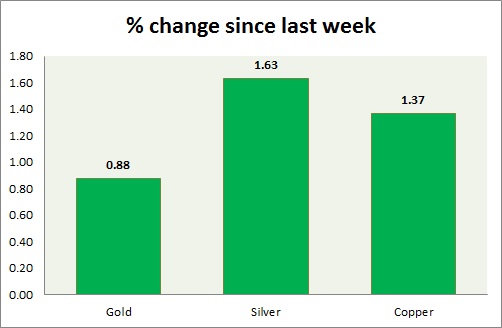 The metal pack is up today. Performance this week at a glance in chart & table -