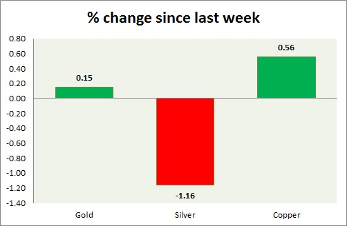 The metal pack is mixed today. Performance this week at a glance in chart & table -