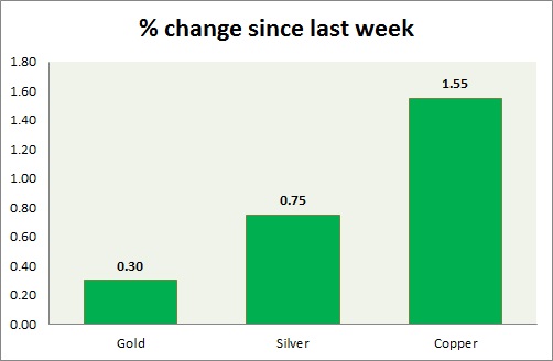 The metal pack is up today. Performance this week at a glance in chart & table -