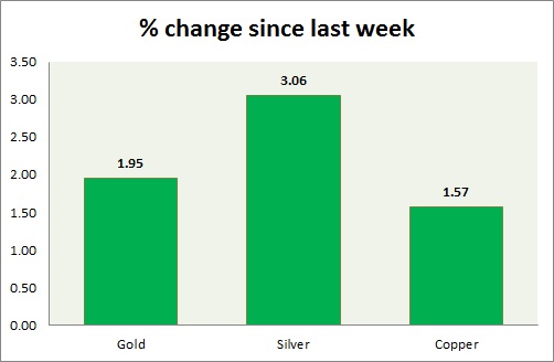 The metal pack is up today. Performance this week at a glance at chart & table -