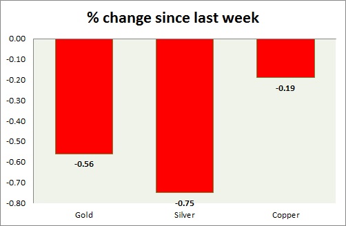 The metal pack is mixed today. Performance this week at a glance in chart & table -