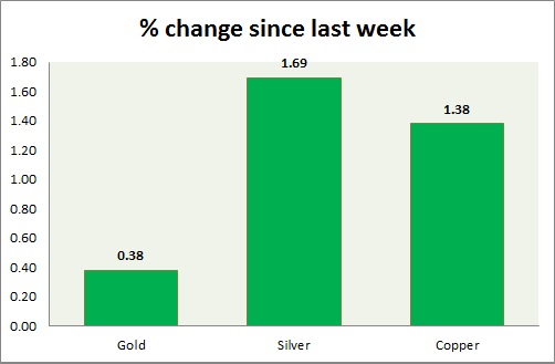 The metal pack is up today. Performance this week at a glance in chart & table -