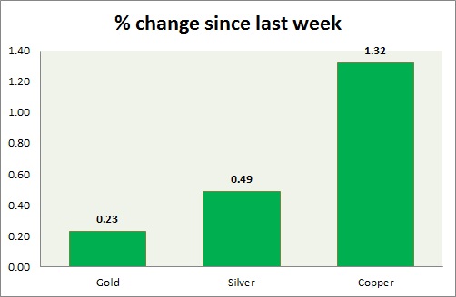 The metal pack is down today. Performance this week at a glance in chart & table -