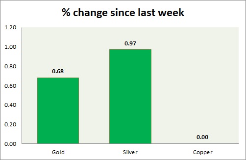 The metal pack is mixed today. Performance this week at a glance in chart & table -