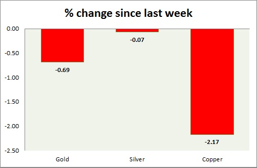 Metal pack is down, in today's trading. Performance this week at a glance in chart & table -