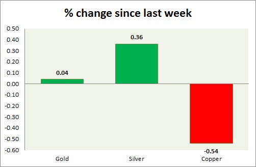 The metal pack is down today. Performance this week at a glance in chart & table -