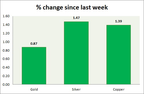The metal pack is mixed today. The performance this week at a glance in chart & table -