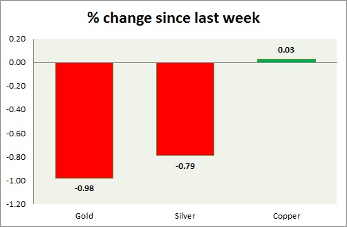The metal pack is mixed today. The performance this week at a glance in chart & table -
