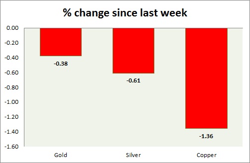 The metal pack is down today. The performance this week at a glance in chart & table -