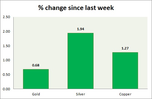 The metal pack is down today. The performance this week at a glance in chart & table -