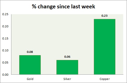 The metal pack is up today. The performance this week at a glance in chart & table -