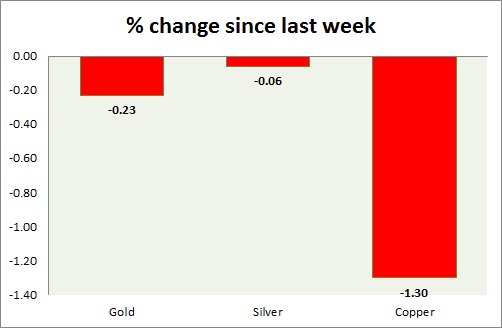 The metal pack is mixed today. The performance this week at a glance in chart & table -
