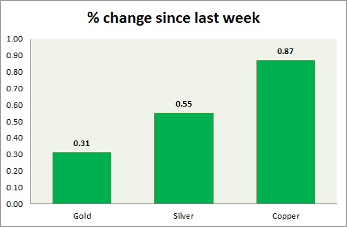 The metal pack is down today. Performance this week at a glance in chart & table -