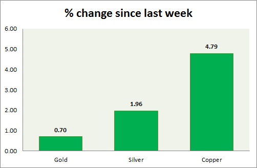 The metal pack is down today. The performance this week at a glance in chart & table -
